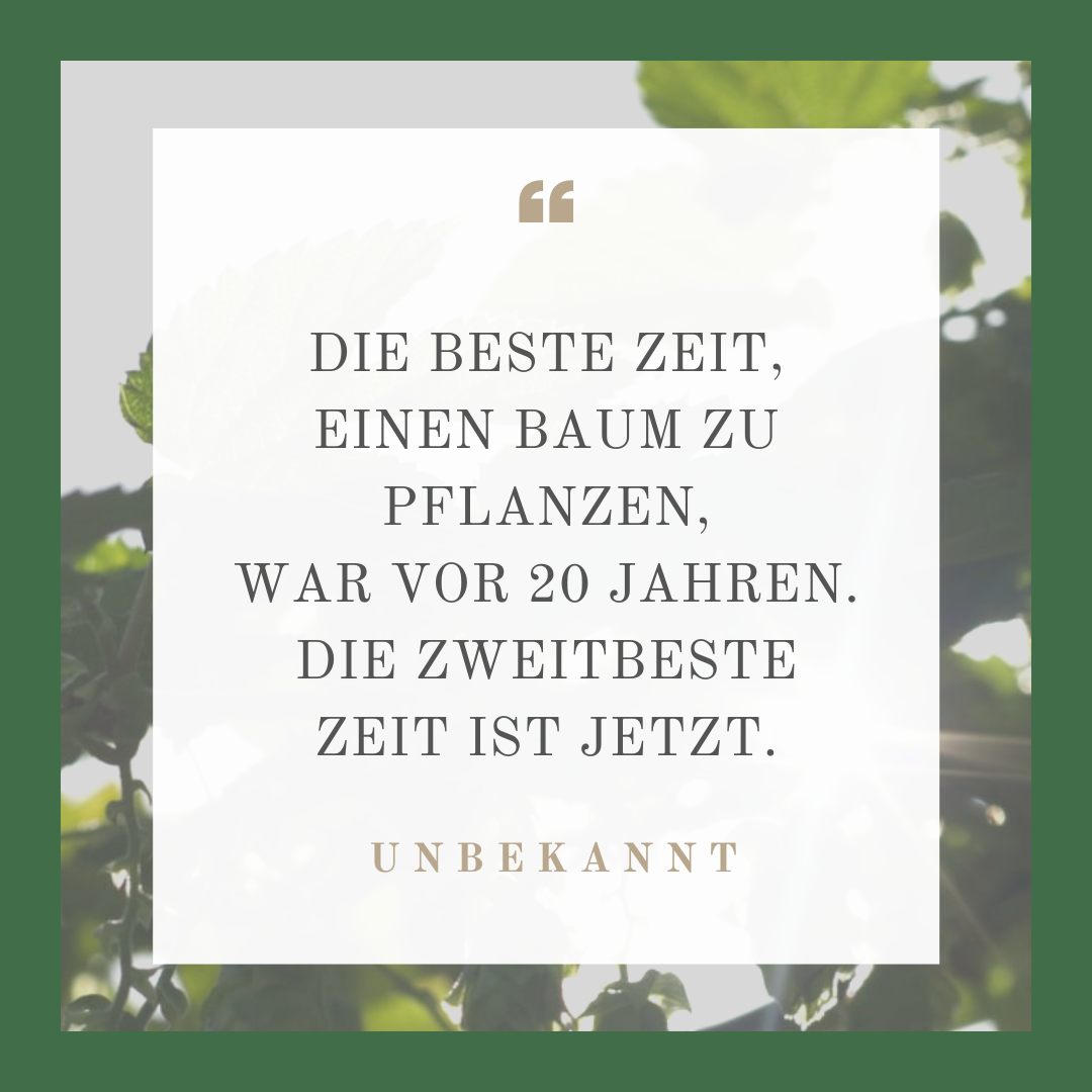 „Die beste Zeit, einen Baum zu pflanzen, war vor 20 Jahren. Die zweitbeste Zeit ist jetzt.“ – Unbekannt