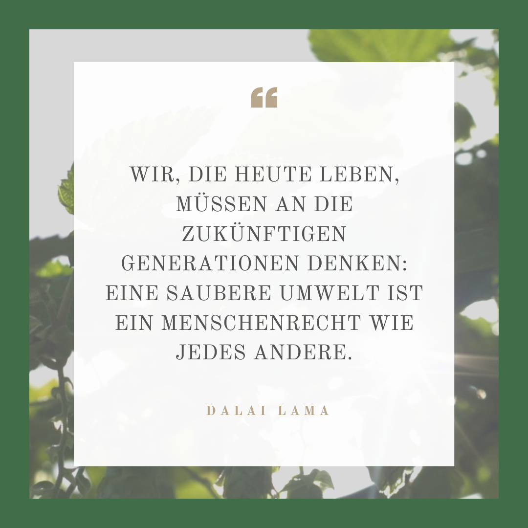 Eine intakte Natur bildet die Grundlage menschlichen Überlebens. Wenn wir Ökosysteme aus dem Gleichgewicht bringen, zahlen am Ende vor allem jene den Preis, die heute noch gar keine Stimme haben – die Kinder von morgen. Der Dalai Lama knüpft diese Verantwortung an ein universelles Prinzip: Gerechtigkeit. Eine saubere Umwelt gehört zu den Grundrechten, genauso wie Freiheit, Bildung oder Sicherheit. Jede Entscheidung, die wir heute treffen – ob beim Konsum, beim Ressourcenschutz oder beim politischen Engagement – schreibt die Zukunft mit. Nachhaltigkeit ist kein Trend, sondern eine Haltung: Wir schützen nicht nur die Erde, sondern auch die Rechte all jener, die nach uns kommen.